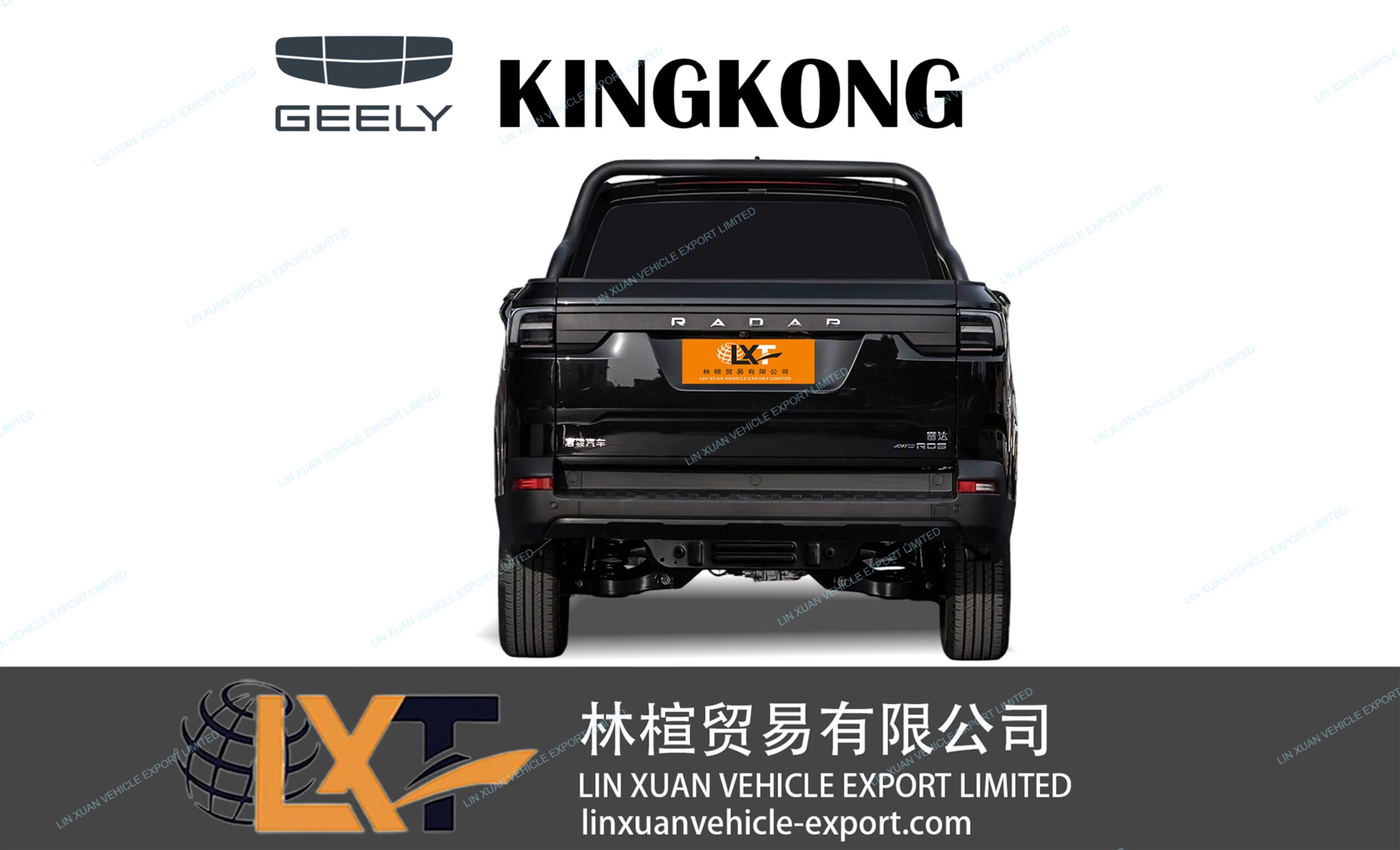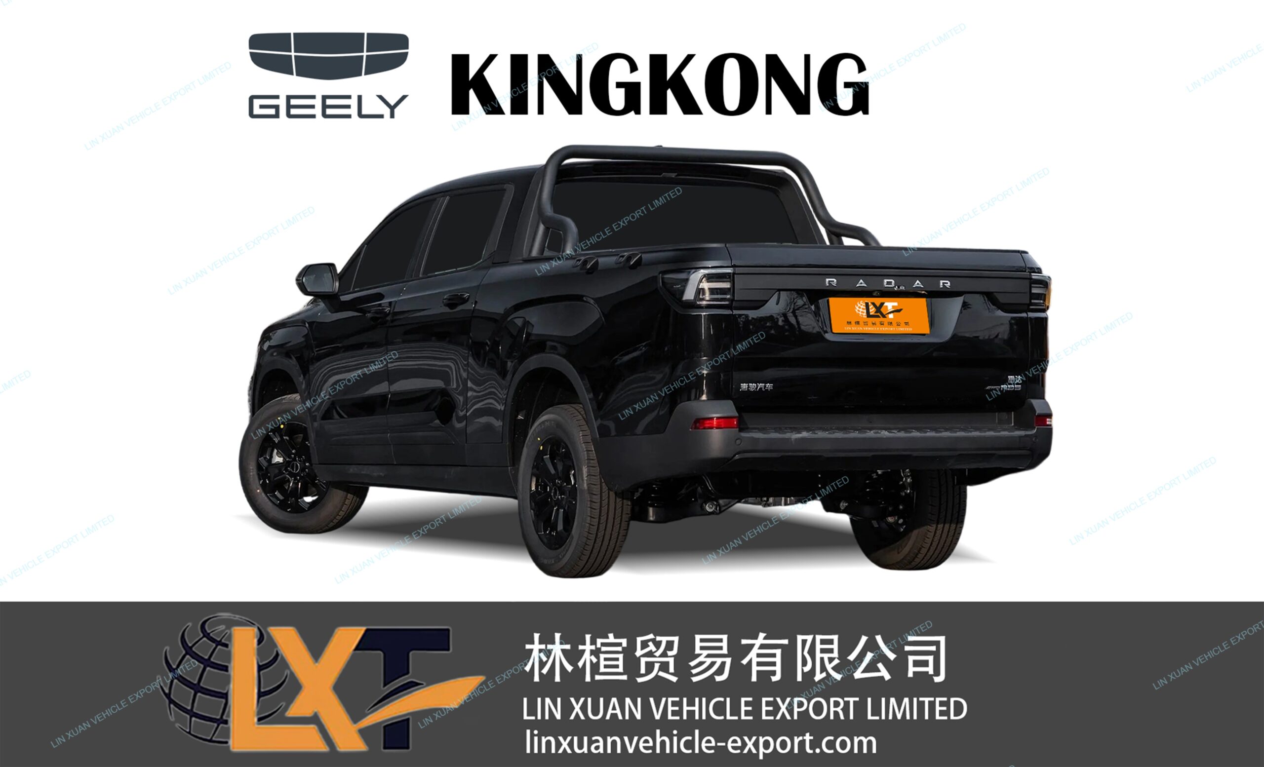 The Geely Radar Kingkong is a bold and rugged electric pickup truck that combines the toughness of a utility vehicle with modern, futuristic styling. Its imposing front end, pronounced wheel arches, and muscular stance convey serious off-road capability, while its elevated ride height and sturdy bed make it well-suited for demanding work or adventurous lifestyles. The design balances brute strength with sharp edges and LED accents, giving the Kingkong a distinctive personality among electric trucks.